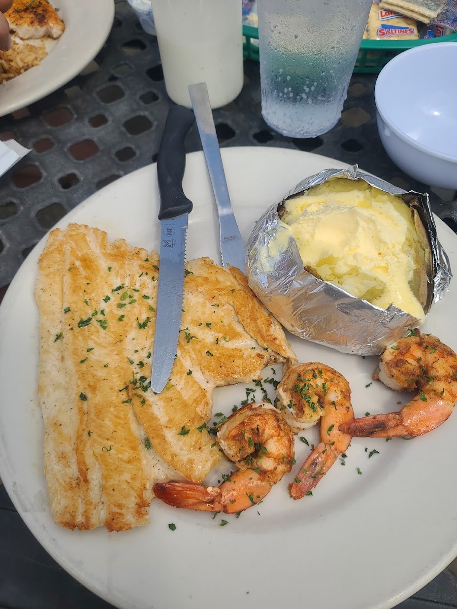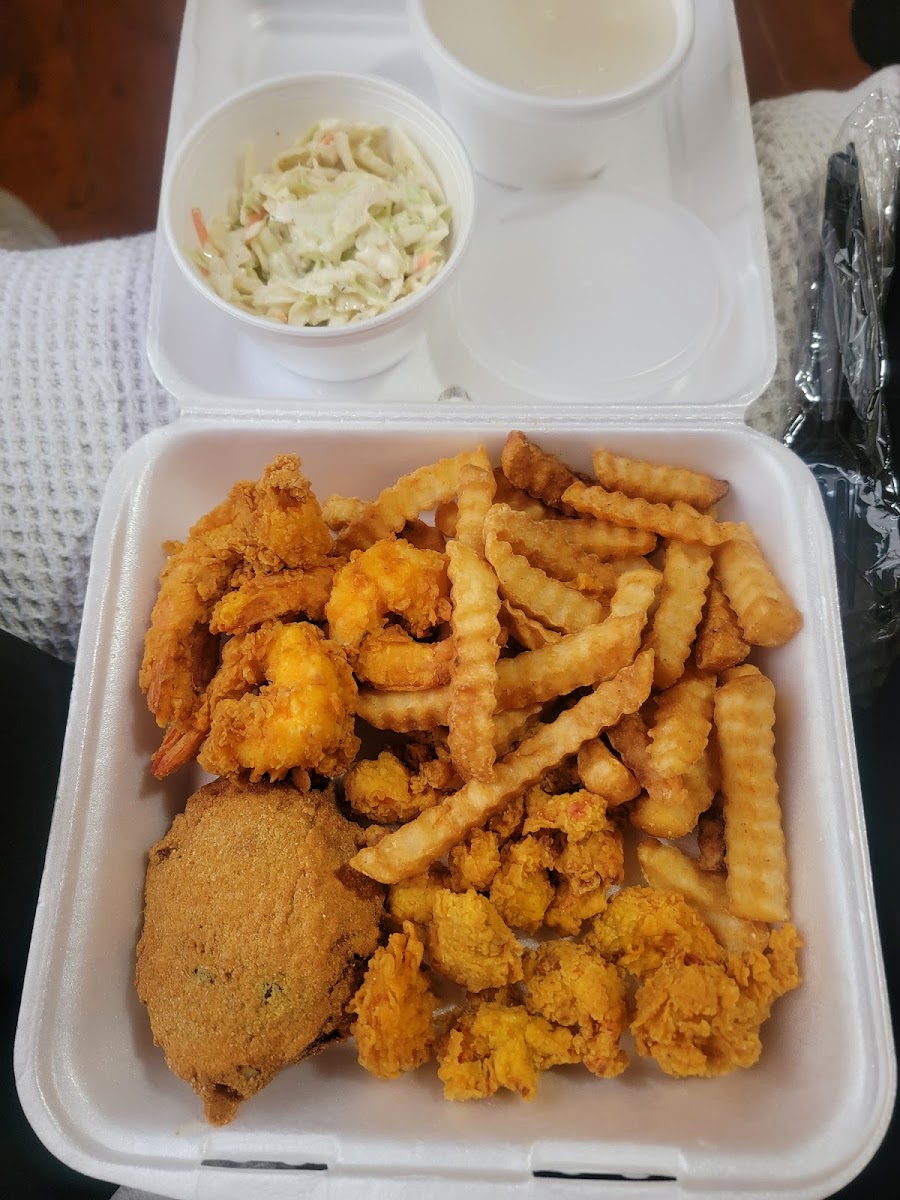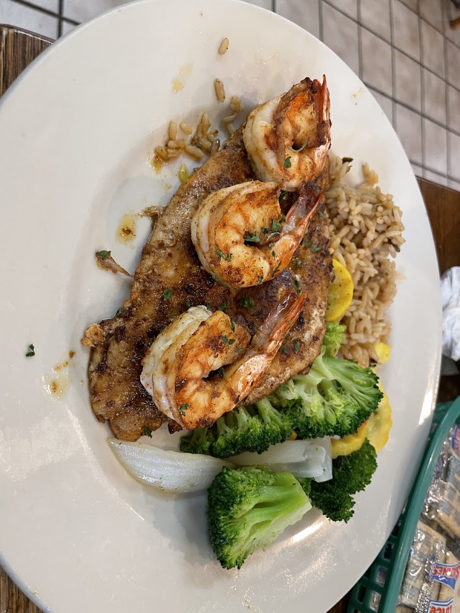 I got the blackened red snapper and seafood gumbo and it was really great. The entrees come with a salad (or cole slaw), rice and roasted veggies (broccoli, carrots, squash & onions). They have a really large menu so you’ll be able to find something you want. Will definitely be back.