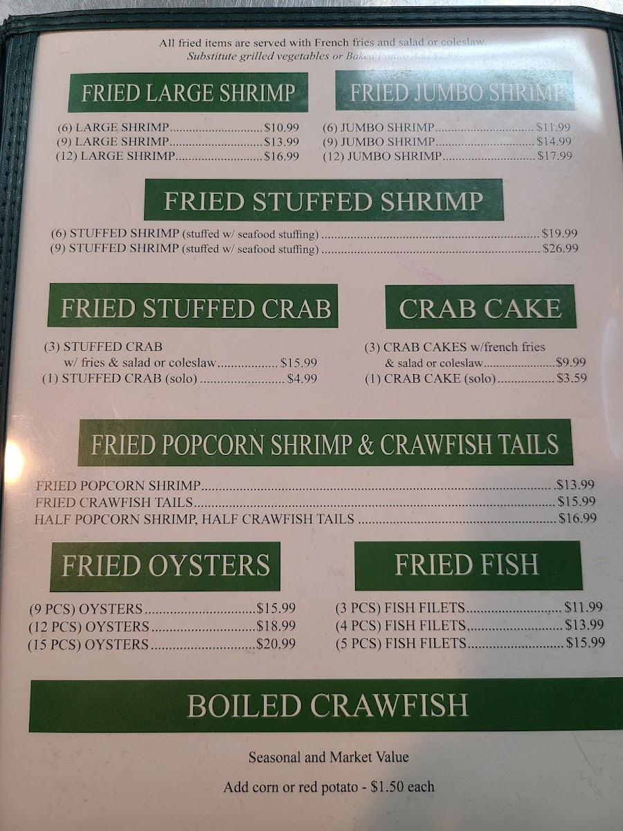 The menu’s combination of grilled seafood, traditional Cajun flavors, and Southern comfort dishes makes it an ideal choice for those looking for an easy, down-to-earth meal. Many entrees come with familiar sides like salad, cole slaw, fries, or steamed broccoli, supporting both quick weekday lunches and relaxed weekend dinners.
